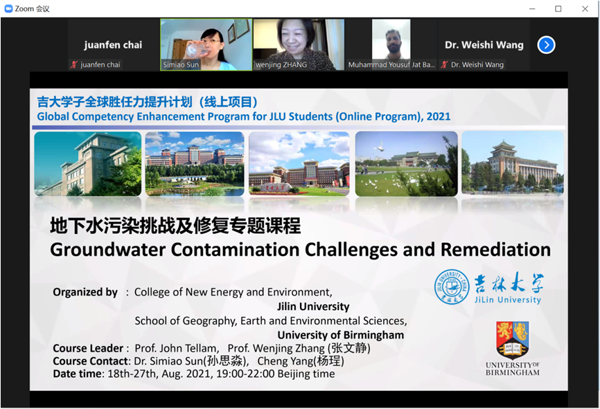 為充分利用全球優(yōu)質(zhì)教育資源,推動人才培養(yǎng)國際化,提升學(xué)生全球勝任力,在 “吉大學(xué)子全球勝任力提升計(jì)劃”支持下,吉林大學(xué)新能源與環(huán)境學(xué)院與伯明翰大學(xué)于2021年8月18-2021年10月13日聯(lián)合舉辦“地下水污染挑戰(zhàn)及修復(fù)專題課程”的線上培訓(xùn)。