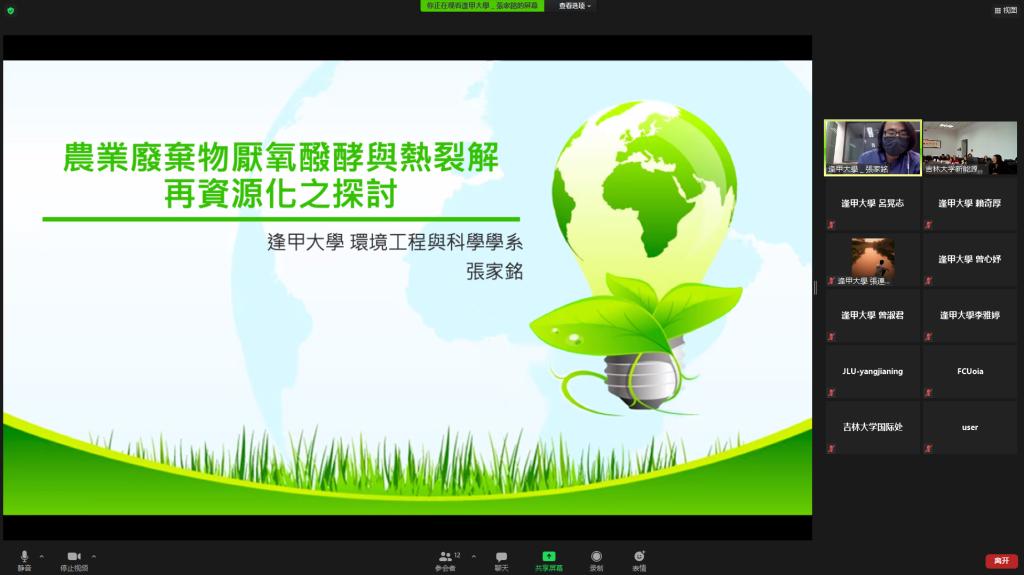 2021年11月30日新能源與環(huán)境學(xué)院承辦的吉林大學(xué)與逢甲大學(xué)研究生在線工作坊—“能源與環(huán)境”研討會通過線上平臺成功舉辦。本次工作坊旨在面向環(huán)境、水資源以及新能源領(lǐng)域的前沿,探索共同關(guān)注的研究方向,增進與臺灣逢甲大學(xué)相關(guān)領(lǐng)域的學(xué)術(shù)交流與科研合作,助推學(xué)院一流學(xué)科建設(shè)。逢甲大學(xué)環(huán)境工程與科學(xué)學(xué)系的呂晃志副教授、賴奇厚副教授,吉林大學(xué)新能源與環(huán)境學(xué)院外事副院長董軍教授、環(huán)境工程系副主任呂聰副教授,和兩校8名碩、博士研究生參會。
