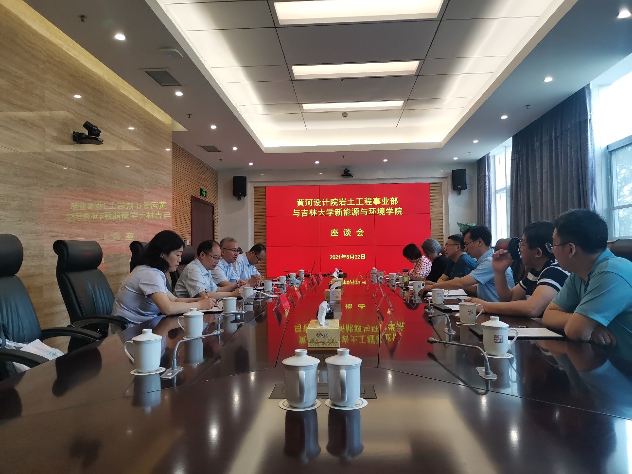 22日上午,汪祥松一行還前往校友所在單位黃河勘測(cè)規(guī)劃設(shè)計(jì)研究院有限公司進(jìn)行合作交流。座談會(huì)上,黃河設(shè)計(jì)院巖土工程事業(yè)部副總經(jīng)理房后國(guó)等多位校友介紹了自己部門發(fā)展情況,領(lǐng)域前沿技術(shù)和校友的發(fā)展現(xiàn)狀。汪書記和各位老師對(duì)校友們的工作業(yè)績(jī)給予充分肯定和贊許。雙方就科研與生產(chǎn)實(shí)踐如何有機(jī)結(jié)合,專業(yè)領(lǐng)域如何實(shí)現(xiàn)突破發(fā)展,如何增強(qiáng)新動(dòng)力等展開探討,最后,雙方對(duì)于校企合作、人才需求、項(xiàng)目開發(fā)等多個(gè)方面,以及“產(chǎn)學(xué)研用”一體化的構(gòu)想,達(dá)成了框架性的初步協(xié)議,一致同意盡快細(xì)化落實(shí)。